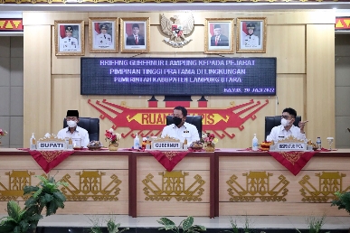 “Penegakan disiplin ASN harus dilakukan dengan tegas dan terus menerus sesuai ketentuan Peraturan Perundang-undangan (PP 94 Tahun 2021 tentang Disiplin PNS), terutama dimasa pandemi covid-19, Pejabat dan ASN harus bisa menjadi panutan masyarakat dalam disiplin mentaati aturan dan hukum yang berlaku,” ucap Gubernur Arinal Djunaidi saat memberikan arahan kepada Pejabat Pimpinan Tinggi Pratama Pemerintah Kabupaten Lampung Utara, di Ruang Tapis, Kantor Bupati Lampung Utara, Kamis (20/01).
