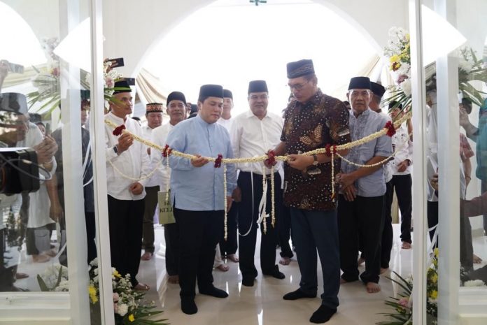 Lampung Tengah JEJARING09.COM Menteri BUMN Indonesia Erick Thohir meresmikan renovasi Masjid At-Thohir di Kecamatan Gunung Sugih, Kabupaten Lampung Tengah, Provinsi Lampung, Sabtu (9/7/2022) sore.