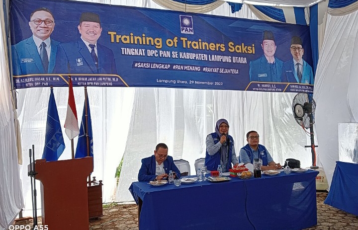 Kegiatan ToT saksi ini terang dia, dikuti oleh setiap dewan pimpinan cabang PAN se-kabupaten Lampung Utara yang nantinya akan melatih para saksi di masing-masing kecamatan. Training ini juga terang dia, sebagai upaya dalam meningkatkan mutu dalam menjaga amanat dan tugasnya mengawal suara dari TPS hingga ke KPU kabupaten Lampung Utara.
