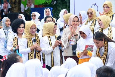 Untuk menambah meriah suasana, Ibu Iriana Joko Widodo membagikan doorprize berupa sepeda kepada peserta yang berhasil menjawab pertanyaan seputar bahaya narkoba dan peduli lingkungan.