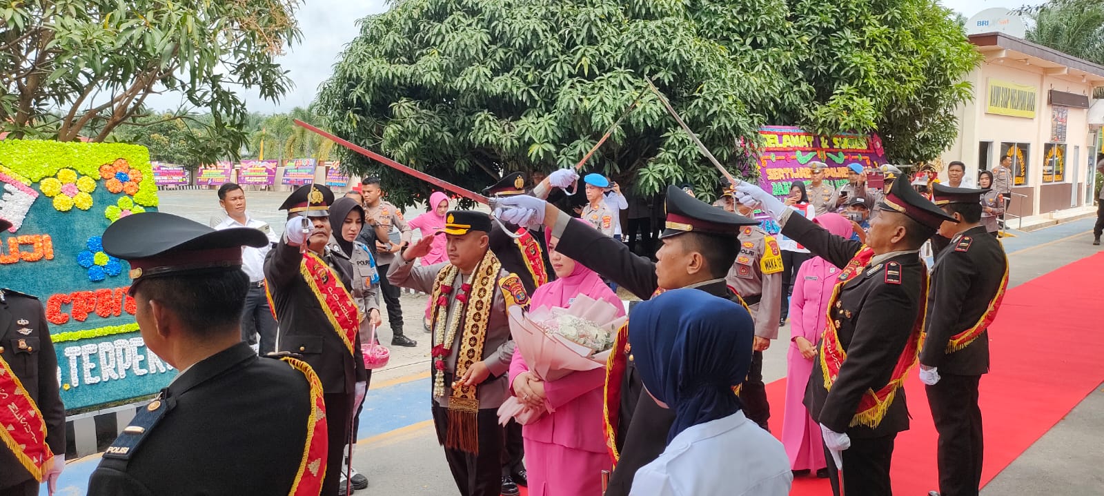Mesuji, Jejaring09 – Kapolres Mesuji AKBP. Ade Hermanto, SH, SIK, CPHR disambut pedang pora saat memasuki Mapolres setempat. Rabu (02/8/23)