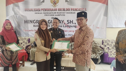Ketua DPRD Lampung Mingrum Gumay SH.,MH menjelaskan bahwa pentingnya sosialisasi pembinaan ideologi pancasila di era digitalisasi ini diharapkan dapat kembali mempertebal rasa persamaan dan persaudaraan sesama anak bangsa.