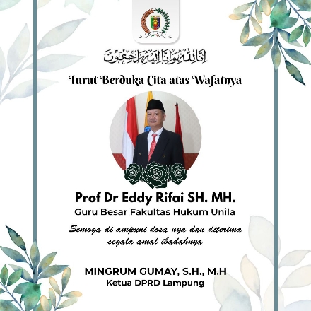 BANDAR LAMPUNG Jejaring09.com Guru besar Fakultas Hukum Unila Prof. Dr Eddy Rifai,  SH, MH bin M. Rifai Matjik dikabarkan meninggal dunia di RS Urip Sumohardjo, Bandarlampung, Kamis (17/8/2023), pukul 23.50 WIB.