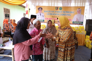 LAMPUNG SELATAN Jejaring09.com Ketua Lembaga Koordinasi Kesejahteraan Sosial (LKKS) Provinsi Lampung Ibu Riana Sari Arinal membagikan bantuan 200 paket sembako, dalam rangka memperingati Hari Anti Narkoba Internasional, di Jl. Moch Ali, Dusun Marga Kaca, Desa Pemanggilan, Kecamatan Natar, Kabupaten Lampung Selatan, Sabtu (19/8/2023).