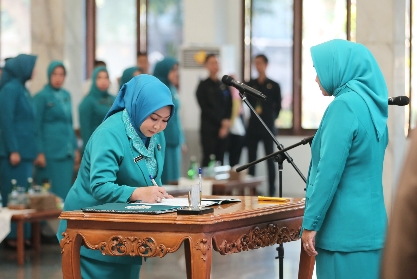 BANDARLAMPUNG Jejaring09.com Ketua Tim Penggerak PKK Provinsi Lampung Ibu Riana Sari Arinal melantik Hellen Veranica Mulyadi sebagai Penjabat (Pj) Ketua Tim Penggerak PKK dan Dekranasda Kabupaten Tanggamus di Aula Mahan Agung, Rabu (27/9/2023).
