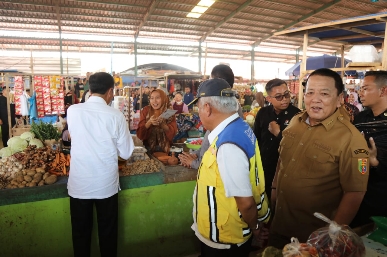 LAMPUNG TENGAH Jejaring09.com Gubernur Lampung Arinal Djunaidi mendampingi Presiden RI Joko Widodo (Jokowi) mengecek harga komoditas pangan di Pasar Baru Rumbia, Kabupaten Lampung Tengah, Jumat (27/10/2023).