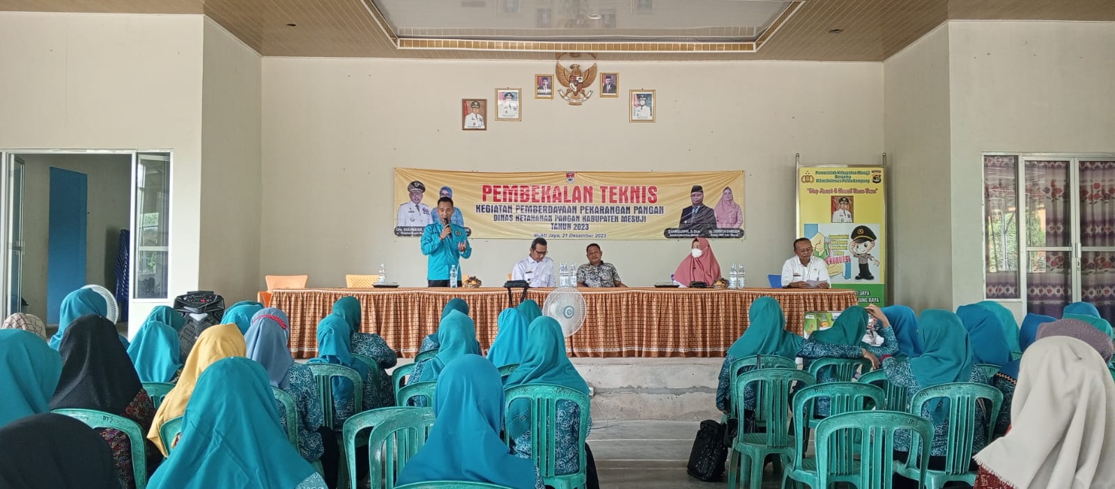 Mesuji – Pemerintah kabupaten Mesuji Melalui Dinas Ketahanan Pangan menggelar kegiatan Pembekalan Teknis kepada Tim Penggerak-Pemberdayaan Kesehatan Keluarga atau TP-PKK dalam pemanfaatan pemberdayaan Pekarangan Pangan se-kabupaten setempat. Kegiatan ini digelar di balai desa Mukti Jaya, Kamis (21/12/23).