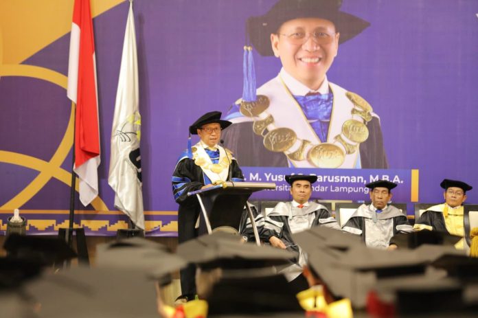 BANDARLAMPUNG-Sekretaris Daerah Provinsi (Sekdaprov) Lampung Fahrizal Darminto, mewakili Gubernur Provinsi Lampung Arinal Djunaidi, menghadiri Rapat Senat Luar Biasa, Yudisium dan Wisuda Program Sarjana/Pascasarjana Universitas Bandar Lampung (UBL), di Gedung Mahligai Agung, UBL Bandarlampung, Rabu (29/05/2024).