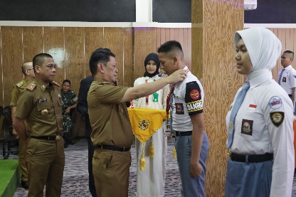 Bandar Lampung-Pj. Gubernur Lampung Samsudin diwakili Kepala Badan Kesbangpol Provinsi Lampung M. Firsada membuka kegiatan Diklat Calon Pasukan Pengibar Bendera Pusaka (CAPASKA) Tingkat Provinsi Tahun 2024 di Hotel GS, Senin (5/8/2024).