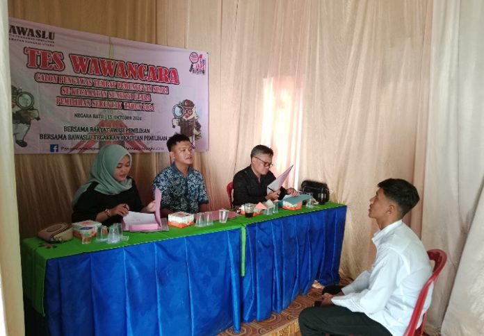 Lampung Utara jejaring09.com – Sebanyak 92 calon P-TPS di Kecamatan Sungkai Utara kabupaten Lampung Utara menjalani tes wawancara. Tes wawancara dilaksanakan di Sekretariat Panwascam Sungkai Utara. Selasa (15/10/2024).