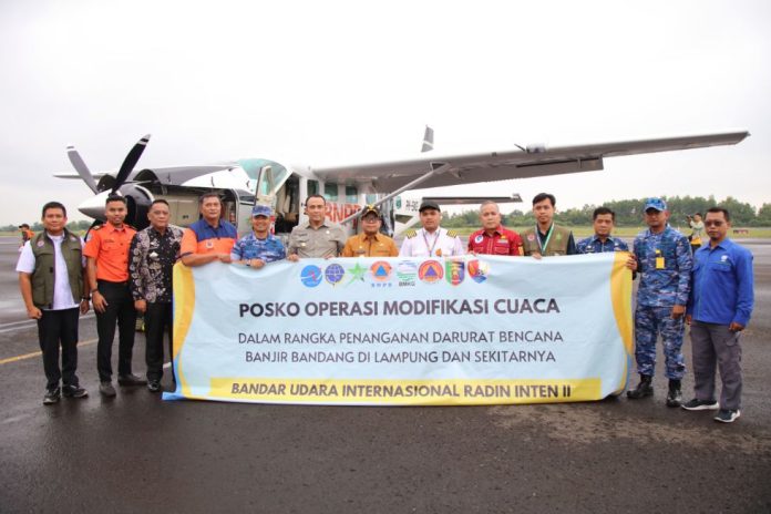 LAMPUNG SELATAN-Pemerintah Provinsi Lampung bekerjasama dengan Badan Nasional Penanggulangan Bencan (BNPB) melakukan Operasi Modifikasi Cuaca (OMC) untuk mengurangi curah hujan dan pencegahan bencana banjir susulan di wilayah Lampung, pada Kamis (23/1/2025) pagi.