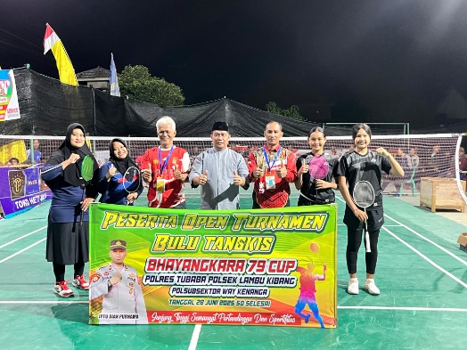 Hadir pada kegiatan Bhayangkara 79 Badminton Open Tiyuh Balam jaya kec. Way kenanga Tulang bawang Barat yg diselenggarakan Polsubsektor Kec. Way Kenanga kabupaten Tulang Bawang Barat pada 13 juli 2025.