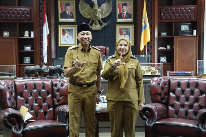 Gubernur Mirza menerima kunjungan Walikota Bandar Lampung Eva Dwiana di ruang kerjanya, Senin (14/7/2025).