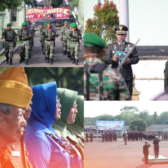 Lampung Utara-Jejaring09.com-Komando Distrik Militer (Kodim) 0412/LU Melaksanakan Upacara memperingati HUT Ke-80 Tentara Nasional Republik Indonesia (TNI) yang jatuh pada Minggu 5 Oktober 2025, dilapangan Kodim setempat.