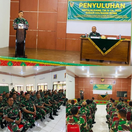 Sementara Ka. Bintal Kodam XXI/RI, Kolonel Inf. Adji Santoso, turut memberikan sambutan dan arahan. Beliau menggarisbawahi relevansi tema yang diangkat, mengingatkan seluruh peserta bahwa Sapta Marga, Sumpah Prajurit, dan 8 Wajib TNI adalah pilar yang harus dipegang teguh untuk mewujudkan profesionalisme sejati sebagai abdi negara dan pertahanan.
