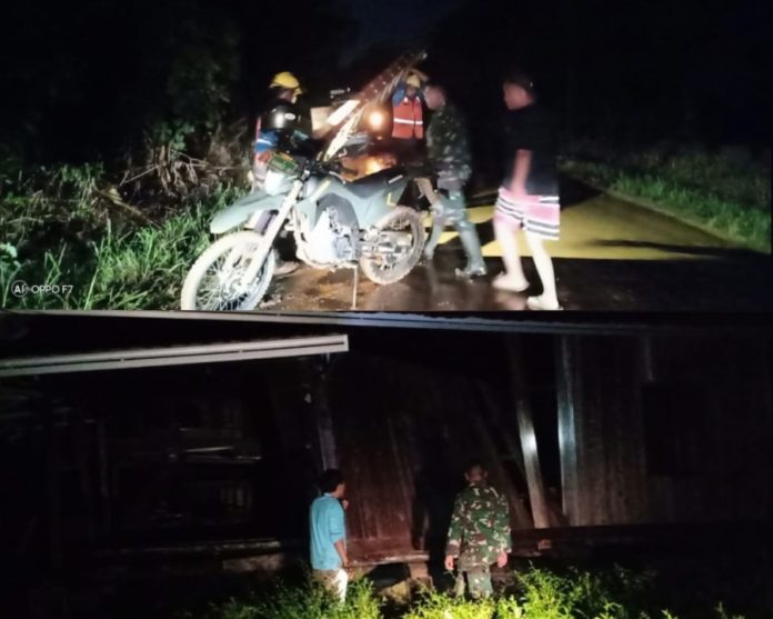 Bekerjasama dengan warga sekitar, Babinsa Koramil 412-08/ABT Serka Agus Widodo didampingi Kades Bapak Yunizar, Sekdes Bapak Sawaludin, dan Pihak PLN, melakukan evakuasi kepada warga ke tempat yang lebih aman, serta melakukan pendataan kerusakan rumah warga. Hal ini dilakukan sebagai langkah awal dan wujud kepedulian TNI terhadap kesulitan masyarkat, khususnya cepat tanggap dan siap siaga terhadap bencana alam.