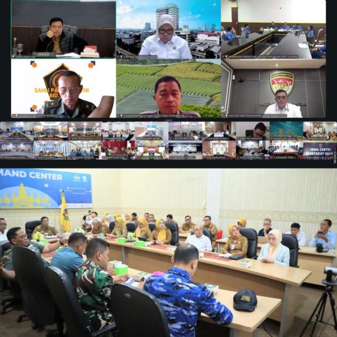 Bandar Lampung-Staf Ahli Gubernur Bidang Ekonomi, Keuangan, dan Pembangunan, Bani Ispriyanto, mengikuti Rapat Koordinasi Pengendalian Inflasi Daerah secara daring dari Ruang Command Center Dinas Kominfotik Provinsi Lampung, Senin (19/1/2026).
