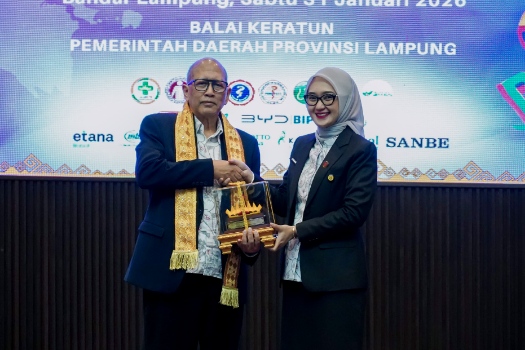Bandar Lampung-Wakil Gubernur Jihan Nurlela resmi dilantik sebagai Ketua Yayasan Kanker Indonesia (YKI) Cabang Koordinator Provinsi Lampung masa bakti 2025-2030. Prosesi pelantikan dipimpin langsung oleh Ketua YKI Pusat, Prof. Dr. dr. Aru W. Sudoyo, Sp.PD-KHOM, di Balai Keratun Lt. III, Sabtu (31/1/2026).