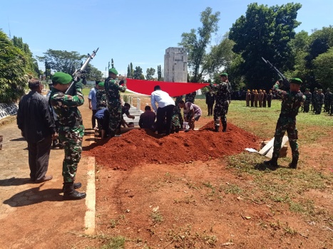 Puncak prosesi berlangsung di Taman Makam Pahlawan (TMP) Kotabumi. Ratusan pelayat yang terdiri dari keluarga, kerabat, Ketua Veteran Kotabumi, serta sekitar 40 personel Kodim 0412/LU memberikan penghormatan terakhir. Dentuman tembakan salvo ke udara memecah keheningan saat jenazah perlahan diturunkan ke liang lahat. Prosedur pemakaman militer ini merupakan penghargaan tertinggi dari TNI AD kepada prajurit yang telah setia menjaga kedaulatan NKRI.