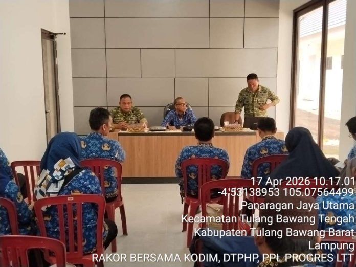 TULANG BAWANG BARAT-Dalam upaya mendukung kedaulatan pangan nasional, Kodim 0412/Lampung Utara melalui Perwira Penghubung (Pabung) Tubaba menghadiri Rapat Koordinasi (Rakor) strategis bersama Dinas Tanaman Pangan dan Hortikultura (TPH) Kabupaten Tulang Bawang Barat, Jumat (17/04/2026).
